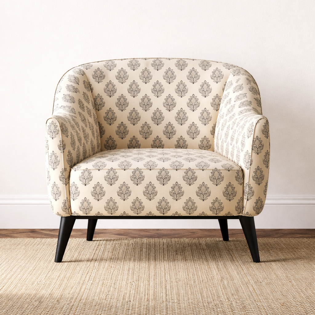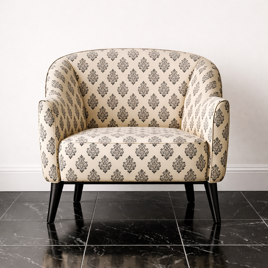Transform a quiet corner into a high-fashion retreat. Our monochrome loveseat features an intricate damask-inspired pattern that bridges the gap between classic elegance and Art Deco style. With its compact profile and sleek black tapered legs, this piece is ideal for an entryway seating area or a sophisticated maximalist lounge.